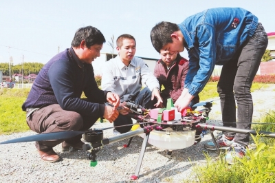 合作社社員正在準(zhǔn)備無(wú)人機(jī)飛行作業(yè)。