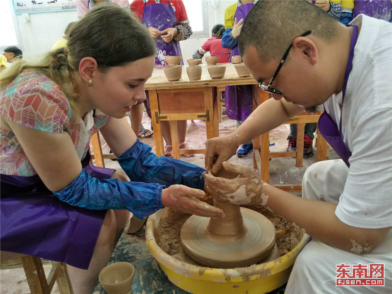 遠(yuǎn)道而來(lái)的外國(guó)友人在非遺傳承人的指導(dǎo)下學(xué)習(xí)拉坯。(資料圖片)