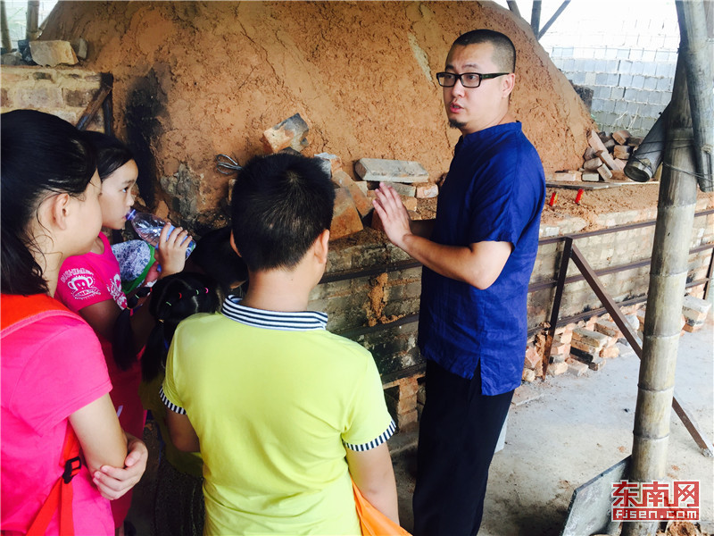 非遺傳承人莊友誼帶領(lǐng)孩子們參觀柴窯。(資料圖片)