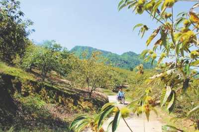 交通方便的錐栗種植基地,村民可騎車上山勞作。