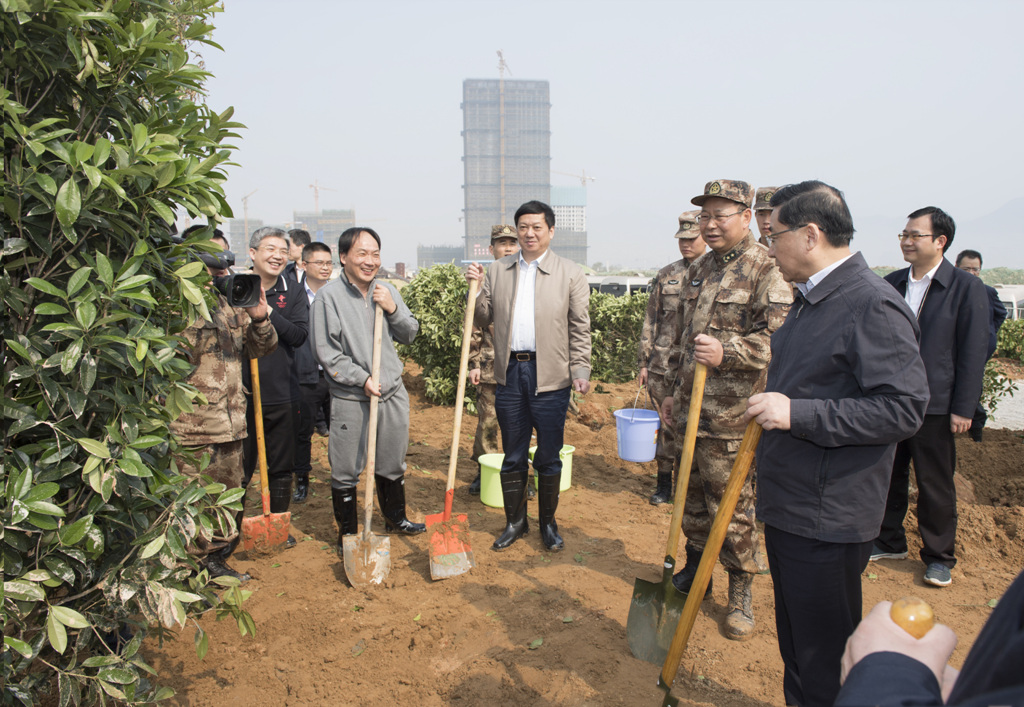 植樹過程中,省領(lǐng)導(dǎo)同在場的干部官兵相互協(xié)作,一起揮鍬挖坑、扶正樹苗、填土夯苗、提桶澆水,一棵接著一棵種,現(xiàn)場一派熱火朝天的景象。在大家的共同努力下,近30畝土地上,金桂、花葉高山榕、菩提榕、秋楓、樟樹等600余棵新植樹苗錯(cuò)落分布、迎風(fēng)挺立,展露出勃勃生機(jī)。