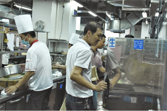 (與會代表現(xiàn)場觀摩宇誠國際酒店后廚管理)