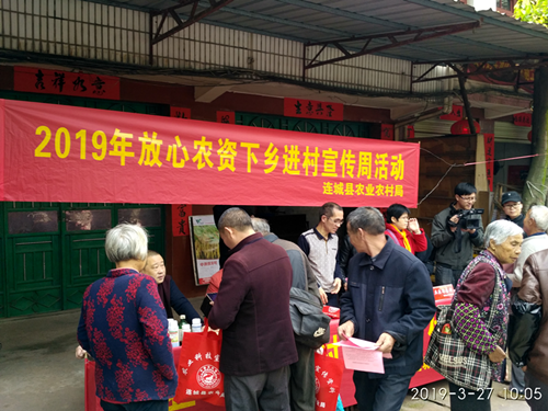 連城縣農(nóng)業(yè)農(nóng)村局開展2019年放心農(nóng)資下鄉(xiāng)進村宣傳周活動,組織了農(nóng)業(yè)綜合行政執(zhí)法大隊、種子管理站、科教站等相關(guān)所站人員參與宣傳活動,印發(fā)《憲法宣傳學(xué)習(xí)資料》、《新修訂農(nóng)藥管理條例宣傳手冊》、《獸藥法規(guī)與安全使用知識手冊》、《禁限用農(nóng)藥名單及相關(guān)法律法規(guī)知識宣傳單》、《農(nóng)民朋友購種注意事項》、《農(nóng)產(chǎn)品質(zhì)量安全宣傳資料》、《禁毒知識手冊》、《掃黑除惡宣傳材料》等簡明易懂的法律法規(guī)宣傳材料1萬余份,活動現(xiàn)場制作宣傳橫幅和標(biāo)語,展示了近年所查獲的違法農(nóng)資樣品以及識別假劣農(nóng)資掛圖供廣大農(nóng)戶辨認識別,同時組織部分農(nóng)資經(jīng)營戶把我局推介的優(yōu)良種子、農(nóng)藥、肥料送至現(xiàn)場擺放并供應(yīng)給農(nóng)民朋友。通過宣傳周活動,普及提高農(nóng)民群眾科學(xué)選購使用農(nóng)資、識假辨假、依法維權(quán)知識和能力。 (連城縣農(nóng)業(yè)農(nóng)村局 鄒德根)