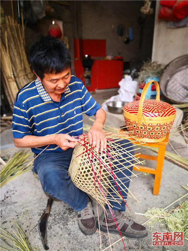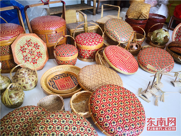 紅色喜慶的竹編簸箕,精致典雅的的竹編提籃,形態(tài)各異的竹編小筐.....在漳州長泰林仁鳳的家里,擺滿了各種各樣做好的竹編成品。