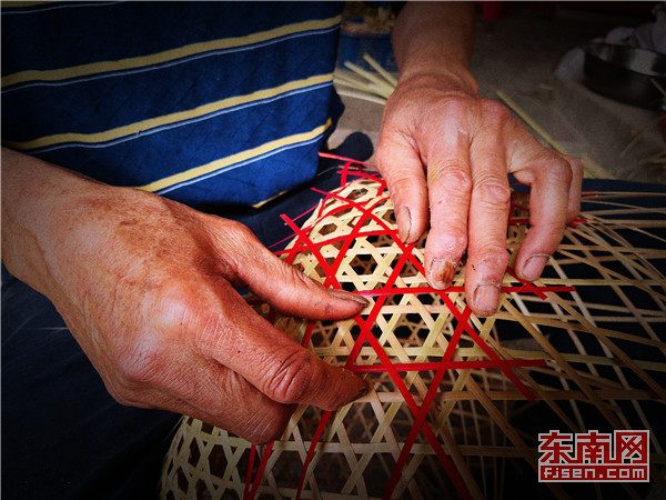 竹編技藝雖具有實(shí)用性、藝術(shù)性和欣賞性,但制作一件精美竹編制品,其工序卻是極其繁雜、耗時?!耙粋€精致的雙層竹筐,有時候就得編一個月。”林仁鳳介紹,像這樣一個精美的小箕,其外一面是百花圖,內(nèi)一面是紅雙喜,用原色的以及染成紅色和黑色的竹篾編制,再雙面合成制作,制作起來需要花費(fèi)40來個工時。