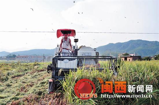 武平縣十方鎮(zhèn)彭寨村一家專業(yè)合作社雇來的收割機在田間搶收夏糧。時下正值“雙搶”時節(jié),武平縣各個農(nóng)民專業(yè)合作社搶抓晴好天氣,在田間開始搶收搶種,保證不誤農(nóng)時。