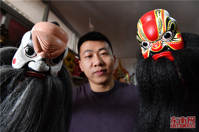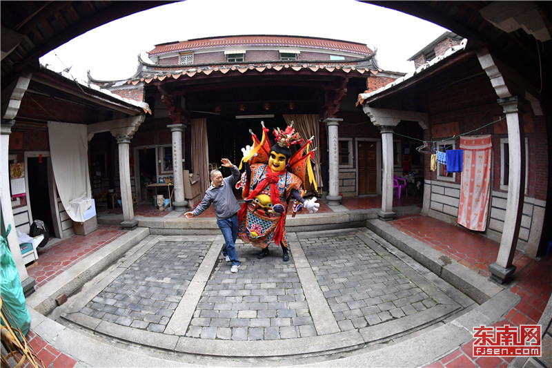 身披五彩衣,頭戴錦冠,腳踩虎頭靴,三太子神像憨態(tài)可掬。日前,在南安市梅山鎮(zhèn)的自家老宅里,陳樹澤又和父親陳志忠開始排練。像這樣風靡海峽兩岸的“電音三太子”,正是陳樹澤的作品之一。