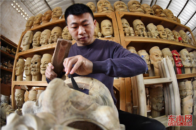 耳濡目染下,他也漸漸喜歡上這項傳統(tǒng)技活。2009年,他高中畢業(yè)后,便走上了木偶雕刻之路。
