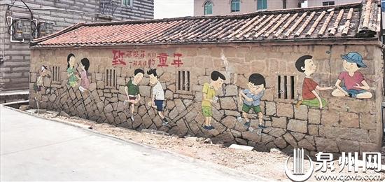 “每天都有兩位天真活潑的小孩陪著我,現(xiàn)在,我的生活不那么孤單了,挺好的?!币环逍露譁剀暗膲L,讓家住晉江市永和鎮(zhèn)巴厝村的洪阿婆心中泛起一絲暖意。近日,巴厝村一組富有鄉(xiāng)村人文氣息的墻繪成為當(dāng)?shù)卮迕駸嶙h的話題,這些墻繪分布在村道兩側(cè)的古民居上,讓兩三百米的蜿蜒村道成了一條特色的“鄉(xiāng)村文化觀光道?!?/p>