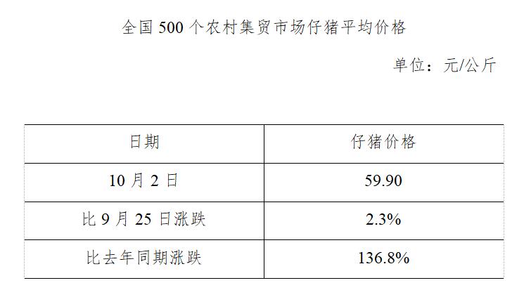全國(guó)500個(gè)農(nóng)村集貿(mào)市場(chǎng)仔豬平均價(jià)格