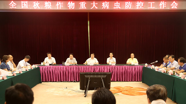 本網(wǎng)訊 8月9日,農(nóng)業(yè)部在湖南長(zhǎng)沙召開(kāi)秋糧作物重大病蟲防控工作會(huì),對(duì)病蟲監(jiān)測(cè)預(yù)警、統(tǒng)防統(tǒng)治、綠色防控和農(nóng)藥減量控害工作進(jìn)行了再部署、再落實(shí)。會(huì)議強(qiáng)調(diào),今年秋糧重大病蟲防控工作任務(wù)艱巨,要切實(shí)做好各項(xiàng)監(jiān)測(cè)防控工作,確保重大病蟲不大面積暴發(fā)成災(zāi),總體危害損失控制在5%以內(nèi),力爭(zhēng)全國(guó)秋糧作物病蟲害專業(yè)化統(tǒng)防統(tǒng)治率達(dá)到35%。
