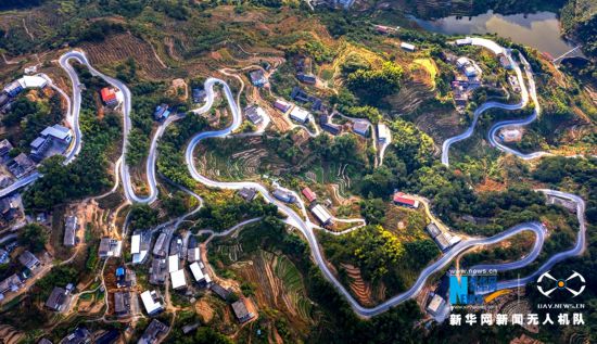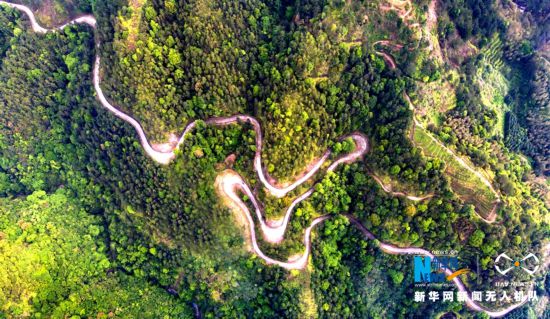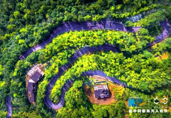 這是永春縣玉斗鎮(zhèn)的盤山公路,宛如一條玉帶(無人機(jī)拍攝)。新華網(wǎng)王雄攝 飛手康慶平