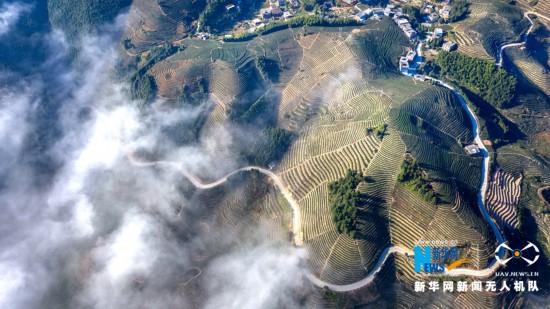 永春縣仙夾鎮(zhèn)的盤山公路在云霧中若隱若現(xiàn),宛如仙境。新華網(wǎng)王雄攝 飛手康慶平