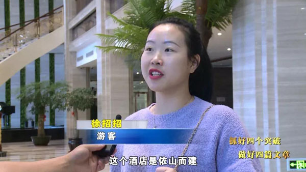 “這個酒店是依山而建,然后環(huán)境也比較好,空氣也還不錯,晚上睡覺也挺安靜的,我已經(jīng)是第二次來了?!?/p>