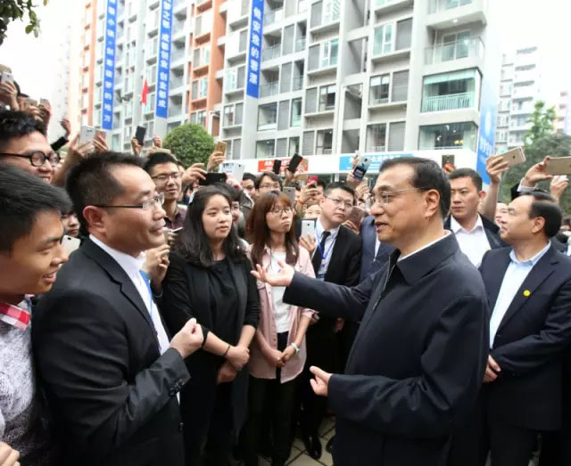 李克強2016年1月5日在山西太原考察清控創(chuàng)新基地眾創(chuàng)空間。總理讓創(chuàng)業(yè)者放心:政府會為你們搭建便捷有效的優(yōu)質(zhì)服務平臺,使你們免除后顧之憂。你們要相信中國的市場潛力巨大,未來發(fā)展預期良好,創(chuàng)業(yè)的前景無量!