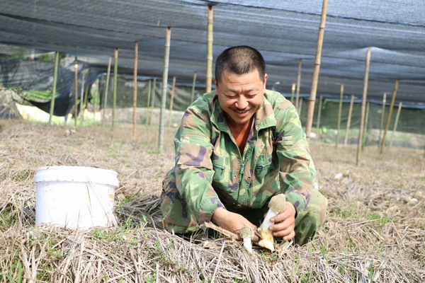5月20日上午,筆者在衛(wèi)閩村的竹蓀地里看到,一朵朵頭頂“黑帽”穿著白色“小裙”的“竹蓀公主”遍布在地里,村民們正忙碌著采摘竹蓀,他們一邊收獲,一邊談笑,讓人感受到豐收的喜悅。
