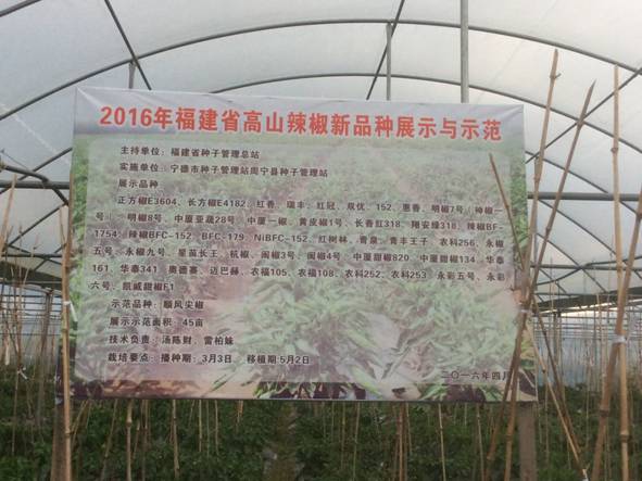 為了加快推進(jìn)現(xiàn)代農(nóng)作物種業(yè)發(fā)展,周寧縣積極開展《2016年福建省高山辣椒新品種展示與示范》現(xiàn)代種業(yè)項(xiàng)目,在周寧縣浦源村上洋村建立高山辣椒新品種展示與示范片,示范片面積45畝,寧德市種子管理部門從省內(nèi)外引進(jìn)辣椒新品種43個,示范品種是:順風(fēng)尖辣,展示品種是:閩椒3號、黃皮椒1號、華泰341等42個。展示區(qū)實(shí)施全生育期科學(xué)管理,統(tǒng)一精細(xì)播種、科學(xué)施肥、統(tǒng)防統(tǒng)治病蟲害。8月4日省種子總站唐航鷹站長帶省、市種子系統(tǒng)專家一行8人察看了示范片,通過田間現(xiàn)場觀摩,一致認(rèn)為展示田種植展示設(shè)計規(guī)范,栽培技術(shù)管理到位,參展品種生長發(fā)育正常,品種特征特性表達(dá)充分,能直觀地了解每個品種的表現(xiàn),為今后我市選擇使用對路品種奠定了基礎(chǔ)。