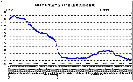 主產(chǎn)省生鮮乳 | 3.39 | 3.41 | 3.39 | -0.6 | 0.0 |