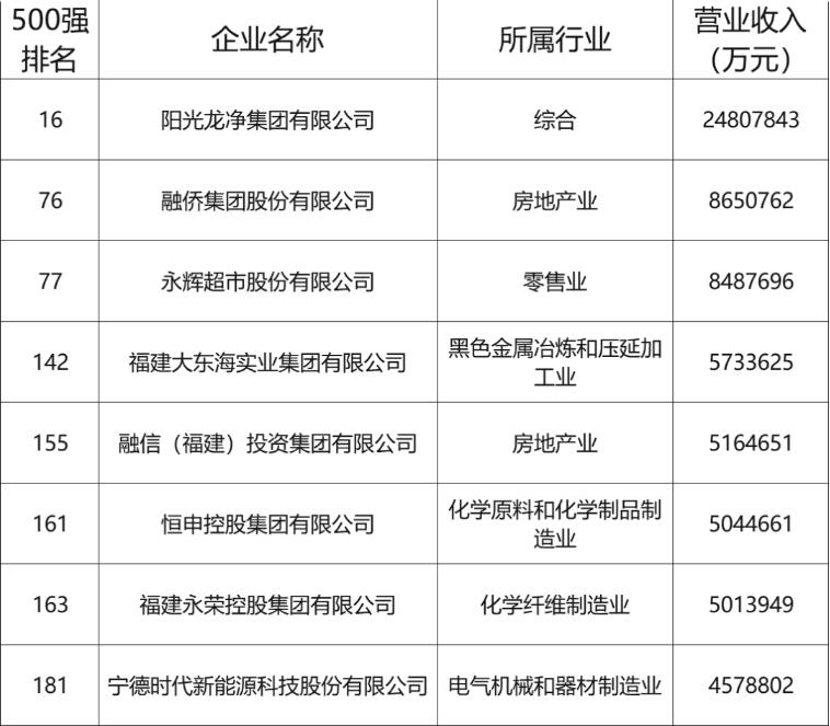 2020中國(guó)民營(yíng)企業(yè)500強(qiáng)榜單(福建)