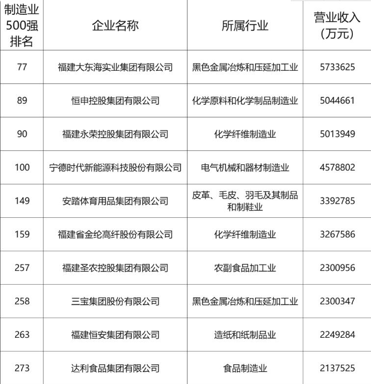 2020中國(guó)制造業(yè)民營(yíng)企業(yè)500強(qiáng)榜單(福建)