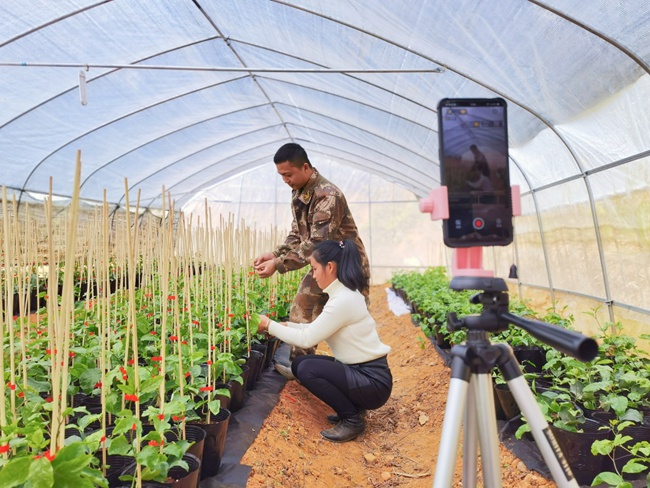 一部手機、一個支架,兩個活躍在田間的身影:“大家請看,這就是我們培育的優(yōu)質(zhì)百香果苗……”