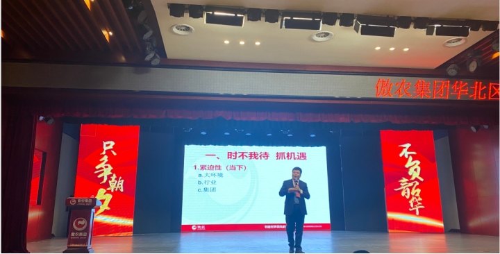 李海峰老師以“時不我待抓機(jī)遇,全力以赴興華北,初心未改創(chuàng)大業(yè)”為題,為傲農(nóng)飼料產(chǎn)業(yè)在華北地區(qū)的發(fā)展謀篇布局。他表示,當(dāng)下大環(huán)境十分友好,中國飼料行業(yè)在歷經(jīng)轉(zhuǎn)型后,迎來欣欣向榮的局面,傲農(nóng)事業(yè)也處于發(fā)展的“快車道”上,飼料產(chǎn)業(yè)在華北區(qū) “求發(fā)展”機(jī)遇無限,大有可為,大家要振奮信心,堅(jiān)定不移推進(jìn)各項(xiàng)業(yè)務(wù)。