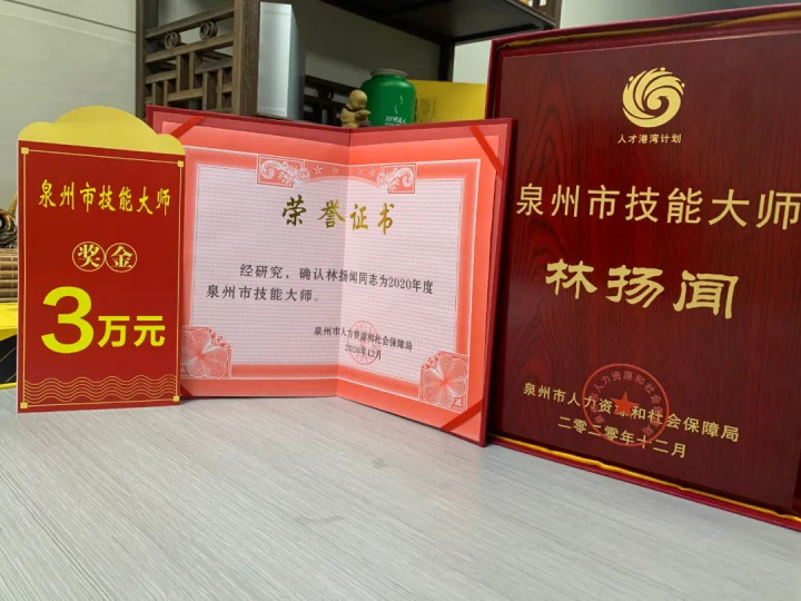 儀式上,我會(huì)理事單位福建省泉州市裕園茶業(yè)有限公司創(chuàng)始人林揚(yáng)聞先生獲評“2020年度泉州市技能大師”。