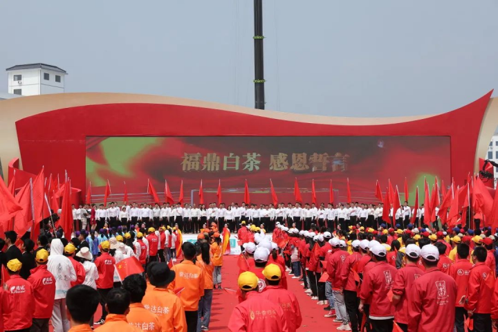 隨著象征著“中國共產(chǎn)黨百年華誕”的100面大紅旗昂揚舞動,福鼎茶人代表宣誓聲“感黨恩、聽黨話、做好人、做好茶!”響徹全場!為黨獻(xiàn)禮,《唱支山歌給黨聽》的背景音樂令人倍感親切。