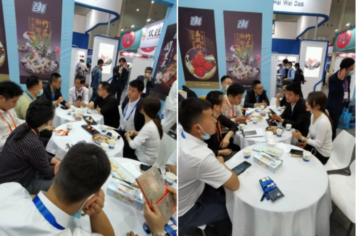 百洋食品在展會上展示了公司生產(chǎn)的產(chǎn)品,現(xiàn)場烹煮美味食品供參觀者品嘗,受到了觀眾的一致好評。