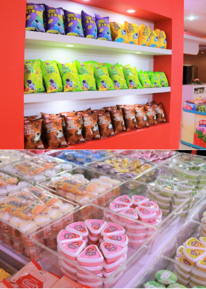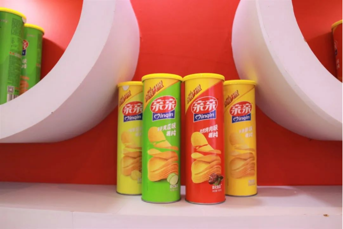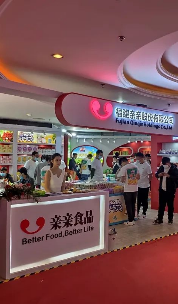 親親果凍、親親蝦條、親親海帶結(jié)、親親素毛肚、親親芒果干等一眾產(chǎn)品整齊排列,引得眾多消費者駐足品嘗,親親薯條更是備受好評。