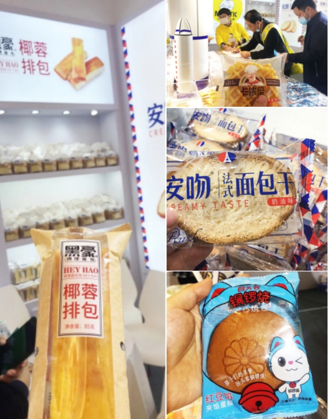 安吻法式面包干,國(guó)內(nèi)首創(chuàng)面包干產(chǎn)品,酥酥脆脆、法式風(fēng)味;回頭客銅鑼燒,包裝新升級(jí),賦予產(chǎn)品新鮮生命力;調(diào)理面包有HEYHAO,黑豪肉松海苔,甜咸交匯、三重風(fēng)味;甜控?zé)o蔗糖戚風(fēng)蛋糕、黑豪椰蓉排包、卡儂尼肉松華夫餅、黃福陽(yáng)肉松芝士蛋糕、黃福陽(yáng)純蛋糕、黃福陽(yáng)棗泥蛋糕等新品陸續(xù)出場(chǎng)。