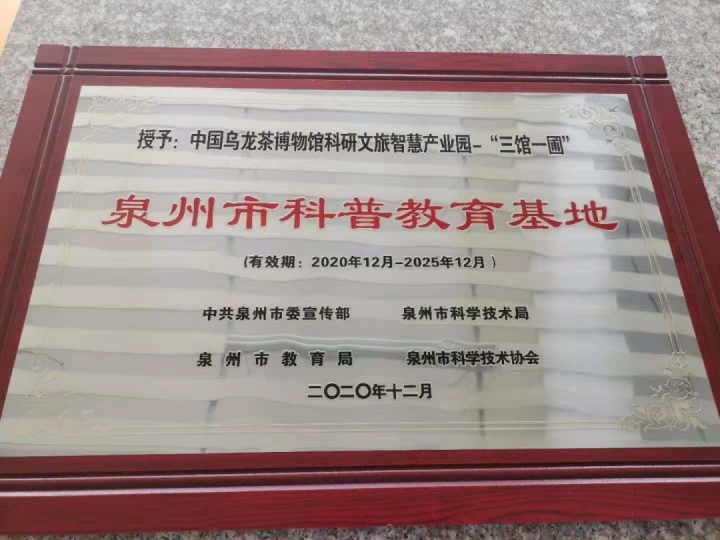 經(jīng)政府發(fā)改部門(mén)登記備案批準(zhǔn),我會(huì)理事單位福建省泉州市裕園茶業(yè)有限公司建設(shè)科研文旅智慧產(chǎn)業(yè)園重點(diǎn)建設(shè)項(xiàng)目——三館一圃(中國(guó)烏龍茶博物館、中國(guó)烏龍茶非遺工藝傳習(xí)館、安溪縣鐵觀音文史館、中國(guó)烏龍茶種質(zhì)資源圃)榮獲“泉州市科普教育基地”榮譽(yù)稱(chēng)號(hào)。