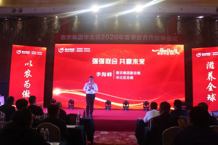 集團(tuán)副總裁、華北區(qū)總裁李海峰以“強(qiáng)強(qiáng)聯(lián)合,共贏未來”為主題,為大家介紹了傲農(nóng)發(fā)展歷程和華北區(qū)2021年事業(yè)發(fā)展規(guī)劃。會上,他提出了“華北3111工程”,制定了ABCD四部曲,并就探索經(jīng)銷新模式、賦能企業(yè)大發(fā)展進(jìn)行了戰(zhàn)略部署。他表示,經(jīng)銷商是傲農(nóng)華北區(qū)事業(yè)取得持續(xù)發(fā)展的強(qiáng)大助力,未來,傲農(nóng)將充分利用自身平臺優(yōu)勢,加快自身職能體系的建設(shè),并從隊伍打造、產(chǎn)品升級、供應(yīng)保障、綜合服務(wù)、獎勵機(jī)制等方面出發(fā),攜手廣大事業(yè)合作伙伴做大做強(qiáng),推動傲農(nóng)華北區(qū)事業(yè)邁上新臺階。