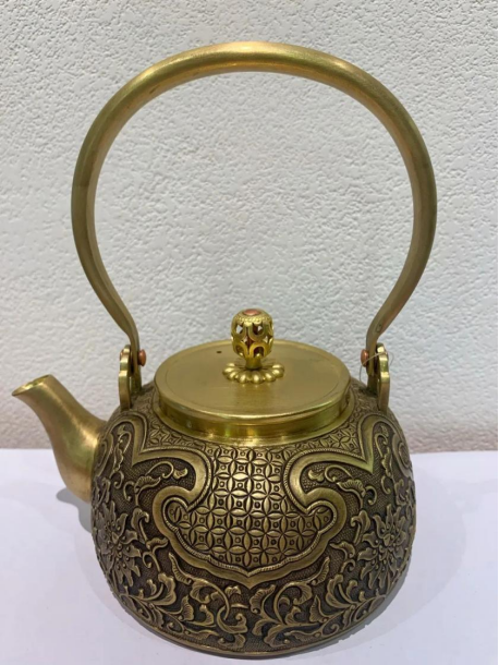 另一款是銅壺-四季如意。該壺采用傳統(tǒng)宮廷鏨刻技藝,以四出如意紋分隔,通體裝飾纏枝寶相花和金錢錦地,蘊含“金資寶相,如意亨通”之意。此壺鏨工嚴謹,造型俊秀,具有宮廷韻味。