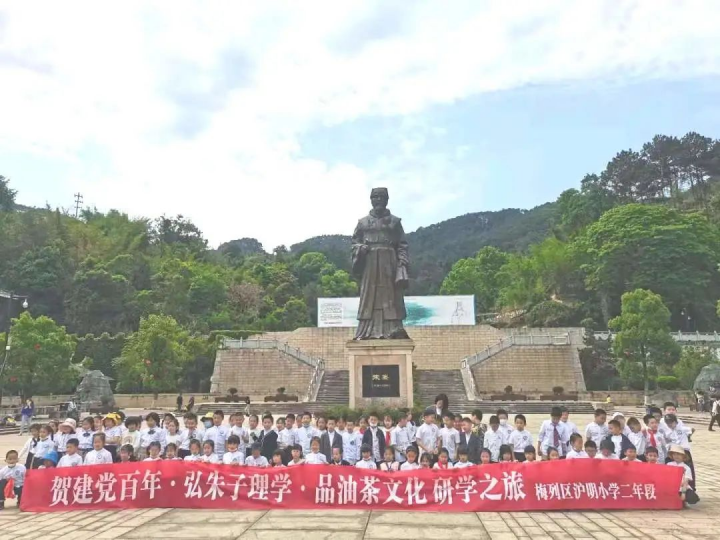 在朱子文化園,孩子們依次參觀了縣博物館、朱熹塑像廣場(chǎng)、南溪書(shū)院、開(kāi)山書(shū)院、鎮(zhèn)山書(shū)院等,在老師的引導(dǎo)下敬拜朱熹、誦讀《朱子家訓(xùn)》,在工作人員的解說(shuō)中了解南學(xué)理學(xué)大師朱熹的生平,感悟其“為有源頭活水來(lái)”,初心不改、用志不分、矢志不移的治學(xué)做事初衷;“一寸光陰不可輕”,不懈怠、不遲疑、卯勁追趕的治學(xué)做事態(tài)度;“萬(wàn)紫千紅總是春”,不囿于書(shū)本、不桎于課堂、看世界、觀自然、思人生的全面發(fā)展追求,零距離感受中華優(yōu)秀傳統(tǒng)文化內(nèi)涵。