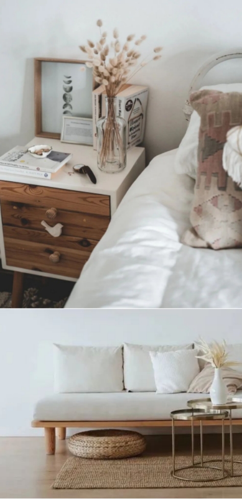 這間臥室采用全白色調,溫潤的木元素相框裝飾放在床頭,成了視覺上的一個亮點,如果你喜歡簡約風格,可以進行嘗試。