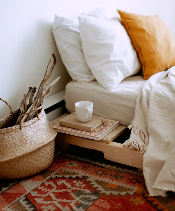 這間臥室最有特色,全屋都使用了木元素。地板爬墻,不僅能舒適美觀,還能減少噪音,睡個踏實覺。