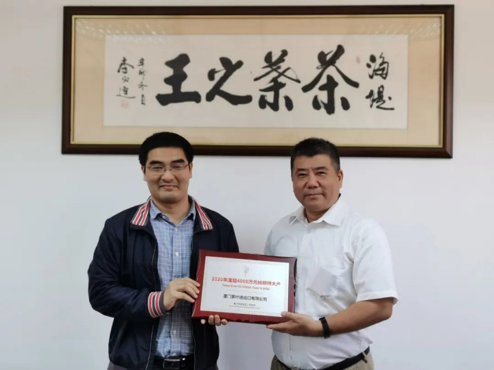 會(huì)上,我會(huì)理事單位廈門(mén)茶葉進(jìn)出口有限公司被授予了2020年度思明區(qū)“超4000萬(wàn)元納稅特大戶”的榮譽(yù)稱號(hào)。截至目前,中茶廈門(mén)公司因其在稅收貢獻(xiàn)方面的突出成績(jī),已經(jīng)先后多次獲得該類表彰。