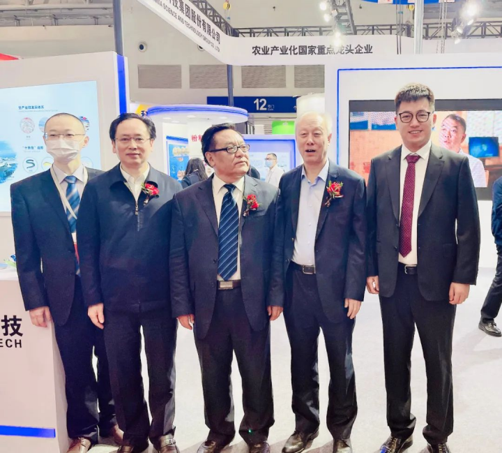 ▲中國飼料工業(yè)協(xié)會會長李德發(fā)院士等領(lǐng)導(dǎo)一行蒞臨天馬科技集團(tuán)展臺