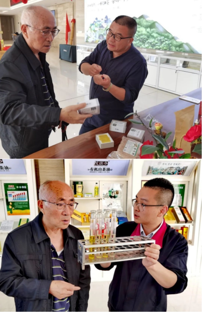 在沈郎公司,通過與董事長(zhǎng)胡鳳翔和生產(chǎn)科研人員的座談交流、深入油茶基地考察、觀察體驗(yàn)山茶油產(chǎn)品、研究分析檢測(cè)報(bào)告后,殷教授說:“山茶油油酸含量高,是目前最好的植物油之一”。他對(duì)沈郎公司堅(jiān)持18年專業(yè)生產(chǎn)具有民族特色的山茶籽油,潛心為廣大消費(fèi)者提供健康用油的初心和情懷表示高度贊賞,并希望沈郎公司在繼續(xù)做好山茶油產(chǎn)品的基礎(chǔ)上,進(jìn)一步研究提取山茶油中特有的有效成分,開發(fā)日用等系列衍生品,增加附加值,提升企業(yè)經(jīng)濟(jì)效益。