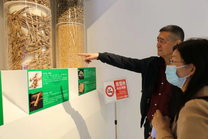 靳曉明博士在安發(fā)科技文化館食用菌展示柜前