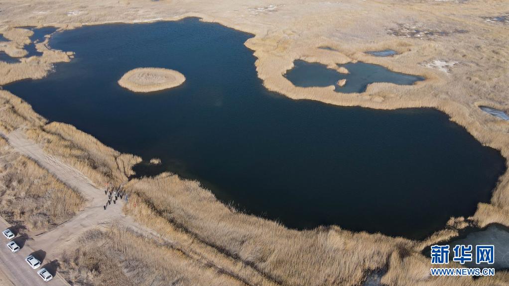 這是甘肅省民勤縣青土湖景色(2021年3月2日攝,無人機照片)。