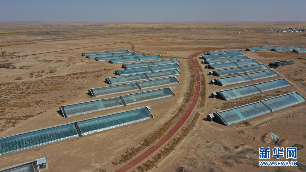 這是甘肅省民勤縣沙漠腹地一處現(xiàn)代農業(yè)產業(yè)園(2021年3月4日攝,無人機照片)。