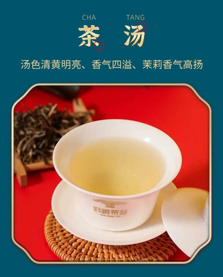 旗艦,是指“九窨龍毫”的工藝,已經(jīng)達(dá)到了福州茉莉花茶的“塔尖”級(jí)別,明前福建高山綠茶+伏天福州單瓣茉莉花茶+歷時(shí)45天“九窨一提”工藝的王炸組合所蘊(yùn)含的九窨品格,被視為花茶界的扛鼎之作。其成茶外形秀美,全芽勻齊飽滿,毫鋒顯露;香氣鮮靈而馥郁,持久留香;滋味醇厚回甘,獨(dú)特的冰糖甜與透徹的鮮靈度,完美平衡了花香與茶香,茶湯澄澈明亮,葉底肥嫩,經(jīng)沏耐泡。
