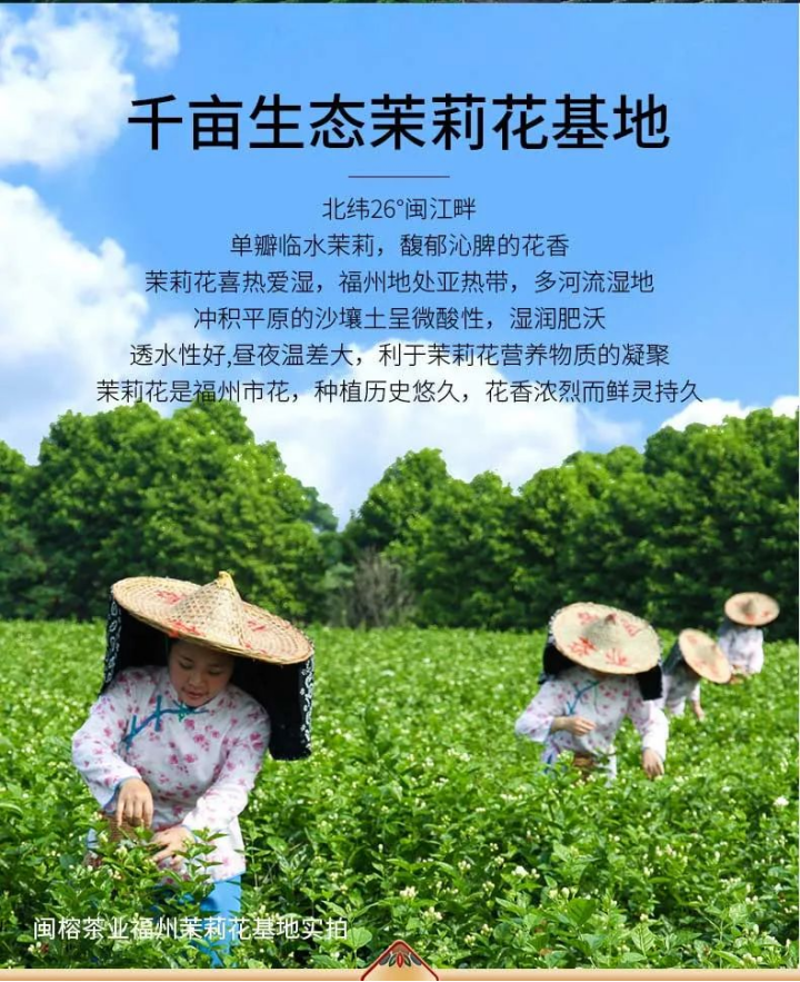 九窨龍毫采用來(lái)自北緯26°福州閩江畔種植的茉莉鮮花為原料,其花香氣獨(dú)特、持久、鮮靈濃郁而聞名遐邇。而九窨龍毫選用的茉莉花標(biāo)準(zhǔn)嚴(yán)格按照閩榕自主核心發(fā)明專利標(biāo)準(zhǔn)進(jìn)行,要求伏天采摘,花蕾潔白、飽滿、新鮮的茉莉花,精心養(yǎng)護(hù)。