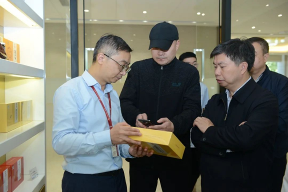 調(diào)研組一行現(xiàn)場(chǎng)掃碼體驗(yàn)仙芝樓產(chǎn)品可追溯系統(tǒng)