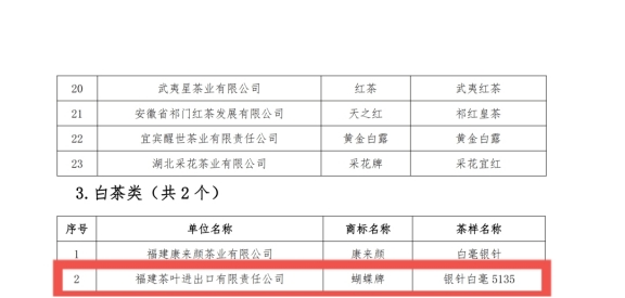 近日,由中國(guó)茶葉流通協(xié)會(huì)、黃山市人民政府主辦的“黃山杯”首屆全國(guó)傳統(tǒng)名茶產(chǎn)品質(zhì)量推選活動(dòng)在安徽省黃山市成功舉辦。我會(huì)會(huì)員福建茶葉進(jìn)出口有限責(zé)任公司選送的“銀針白毫”(5135)、“牡丹皇”白茶(5152)分別榮獲“特別金獎(jiǎng)”、“金獎(jiǎng)”。