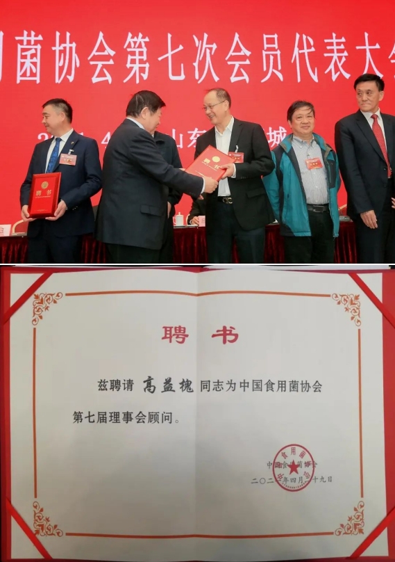 李玉院士代表中國食用菌協(xié)會(huì)為安發(fā)(福建)生物科技有限公司董事長高益槐、福建省食用菌學(xué)會(huì)理事長王澤生、黑龍江省食用菌協(xié)會(huì)會(huì)長韓貴清頒發(fā)中國食用菌協(xié)會(huì)顧問聘書。