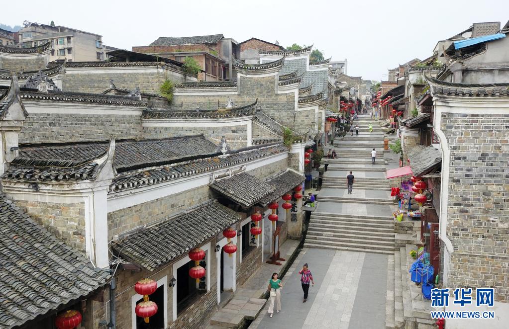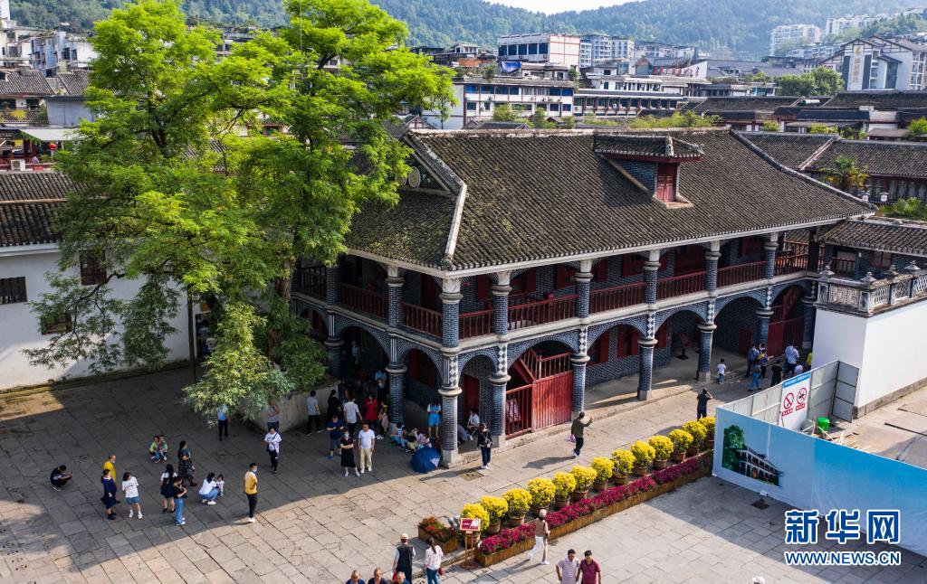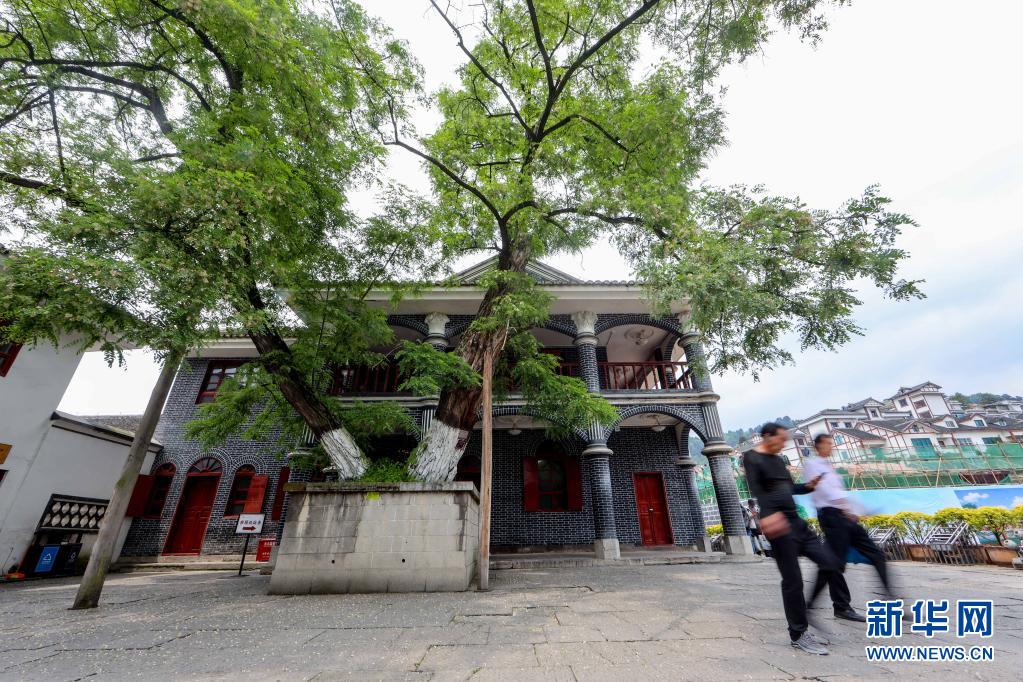游客在貴州省黎平會議會址前參觀(2019年7月2日攝,無人機照片)。新華社 楊文斌 攝