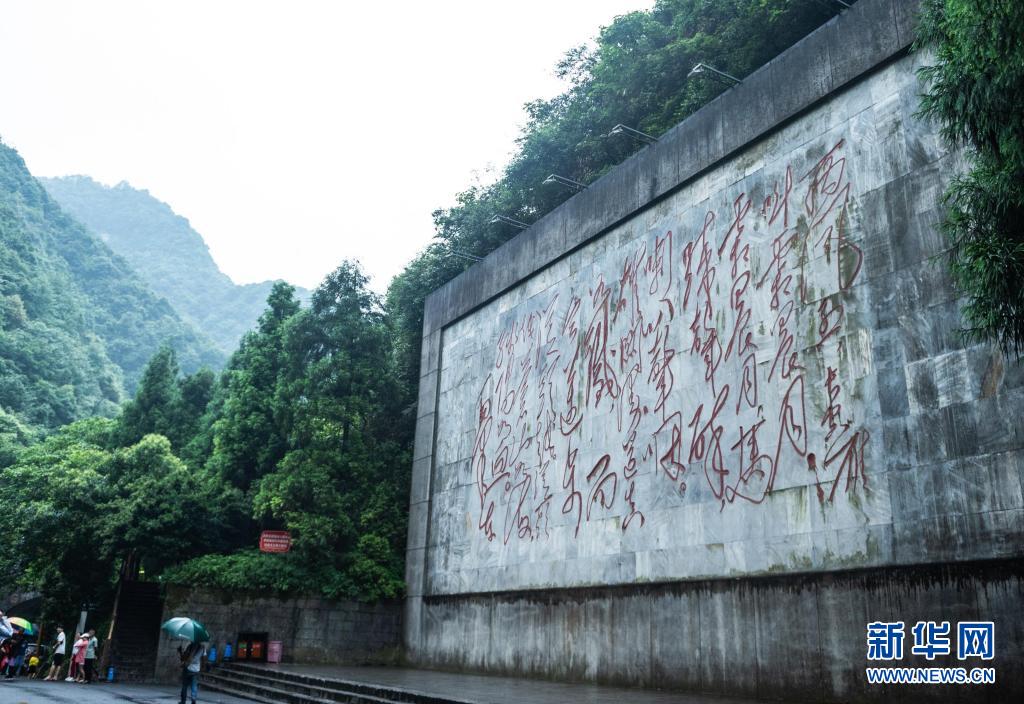 這是刻有《憶秦娥·婁山關(guān)》的石壁(2019年7月4日攝)。新華社 陶亮 攝